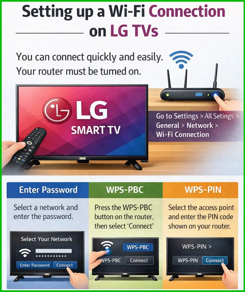 Configurer la connexion Wi-Fi sur les TV LG est très simple ; vous pouvez vous connecter rapidement et facilement. Votre routeur doit être allumé — de nos jours, il est généralement toujours allumé.