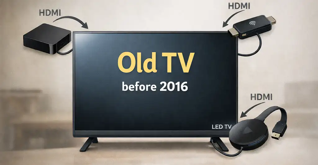 La manière la plus simple de résoudre ce problème est d’utiliser un appareil de streaming externe qui se connecte au téléviseur via HDMI et permet d’installer des applications modernes. Les options populaires incluent Amazon Fire TV Stick, Apple TV (3e génération) et Apple TV (4e génération) avec tvOS 11 ou une version ultérieure, ainsi que Roku Streaming Stick et Google Chromecast.