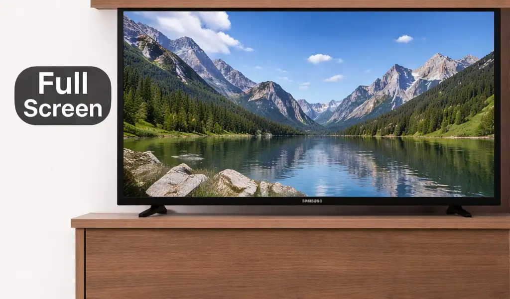 Parfois, la taille de l’image sur une TV Samsung peut être mal réglée, ce qui entraîne un affichage incorrect de l’image. Cela est particulièrement visible sur les images contenant des éléments de contrôle ; par exemple, lors de la diffusion d’une vidéo depuis un ordinateur portable vers la TV, vous pouvez remarquer que les bords de l’image dépassent de l’écran.